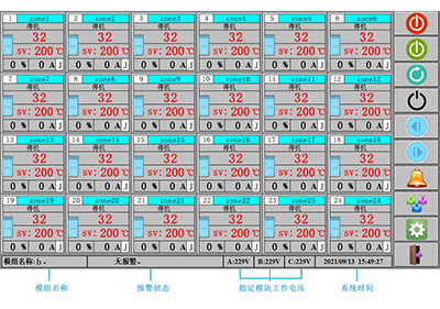 集中觸屏機箱系統(tǒng)升級優(yōu)化 ----TC3/2000系列如圖1所示此圖為觸摸屏人機交互的頁面,每個溫區(qū)的運行狀態(tài),設定的溫度,測量的溫度,輸出功率,以及輸出的電流相對應的顯示在每個溫區(qū)對應的界面中。用戶...